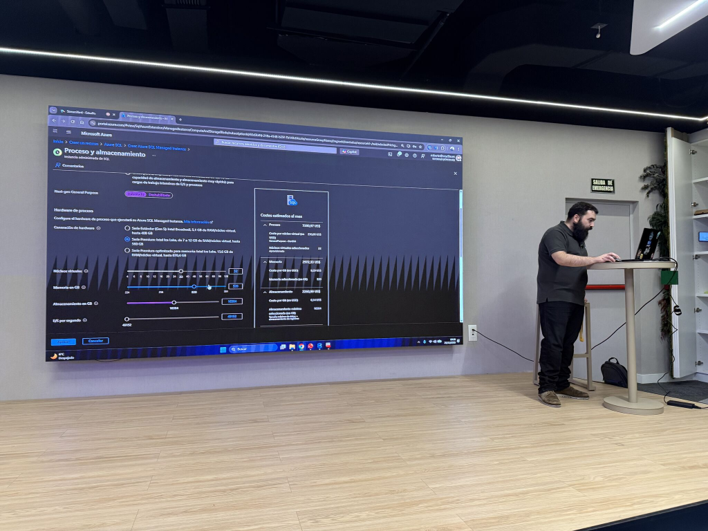 Uno de los puntos más interesantes fue la presentación de casos reales, donde optimizar una sola query permitió reducir hasta un 40 % el consumo en Azure SQL y mejorar significativamente los tiempos de respuesta de una aplicación .NET, sin tocar ni una sola línea de código de la aplicación. Este tipo de ejemplos conectan muy bien con el día a día de quienes trabajamos con bases de datos y sistemas en producción.