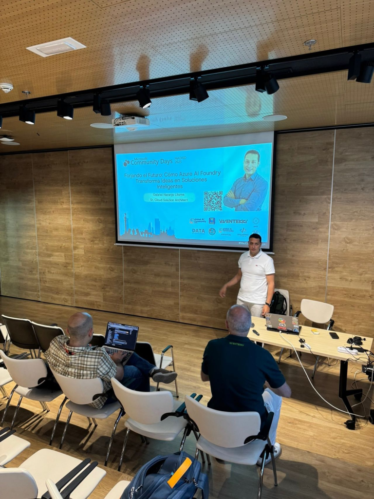 En mi sesión, “Forjando el Futuro con Azure AI Foundry”, el foco estuvo puesto en todas las novedades y capacidades que Foundry pone sobre la mesa para construir soluciones de inteligencia artificial empresariales de forma más estructurada, segura y escalable. Más allá del hype que suele rodear a la IA generativa, la charla se centró en cómo Azure AI Foundry ayuda a transformar ideas en soluciones reales, abordando aspectos clave como la arquitectura, la gobernanza, la seguridad y el ciclo de vida completo de las aplicaciones de IA en entornos corporativos.
