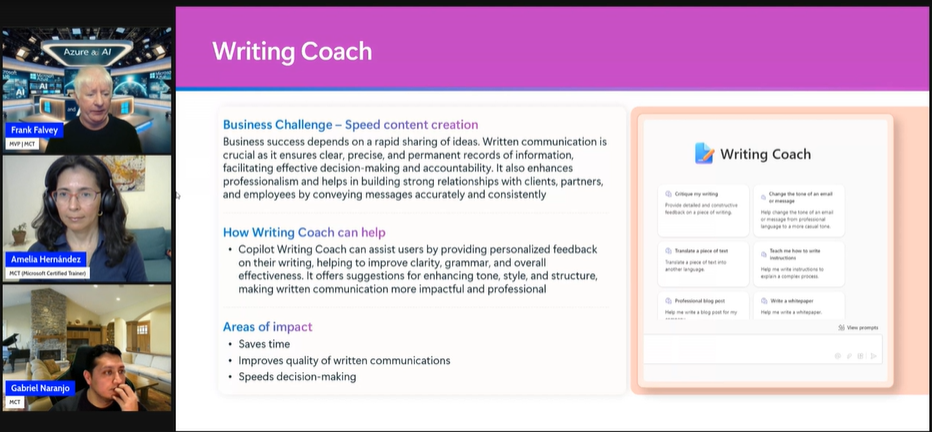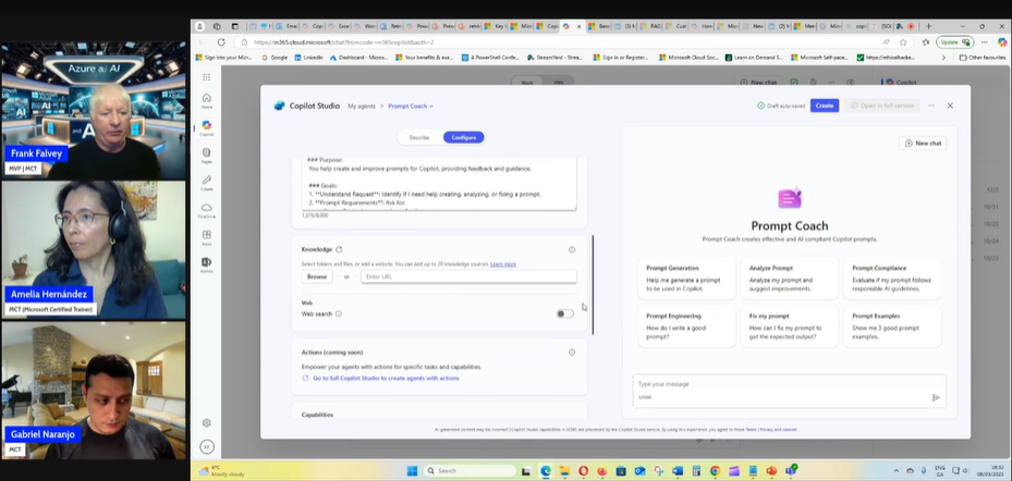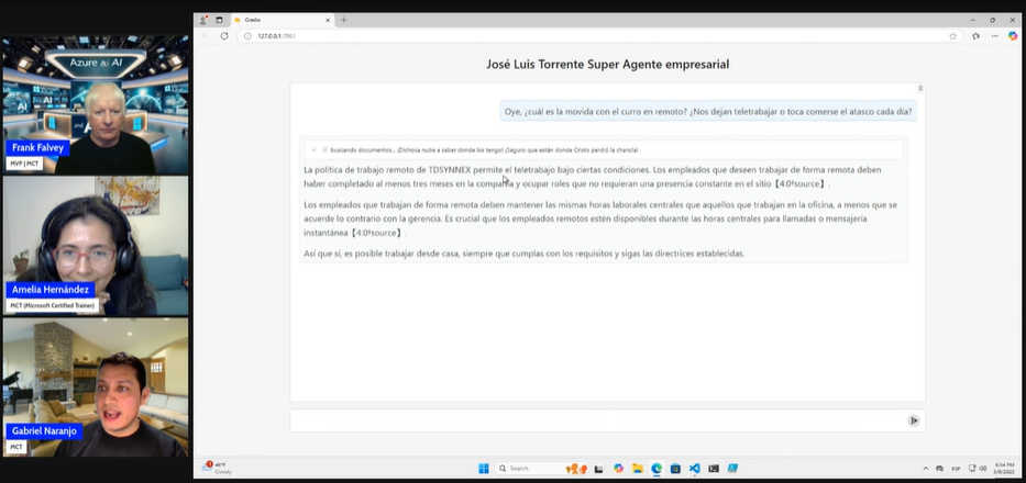 Dentro de las sesiones semanales de The Azure and AI Show, organizado por Frank Falvey, se crean espacios que van mucho más allá de una simple charla técnica. Conocí a Frank durante el MCT Summit 2025, y desde entonces surgió una colaboración natural basada en una misma idea: compartir conocimiento, apoyar a nuevos ponentes y construir comunidad sin barreras.